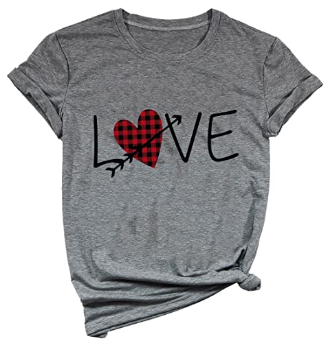 Ykomow Womens Valentine Shirts Leopard Valentine's Day T Shirt Plaid Love Heart G